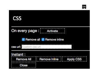 Remove CSS from Website เป็นส่วนขยายของ Firefox ที่ออกแบบมาสำหรับนักพัฒนาเว็บที่ต้องการปรับปรุงการทำงานของตนโดยการลบ CSS ออกจากหน้าเว็บ เครื่องมือนี้มีประสิทธิภาพในการกำจัดสไตล์ในบรรทัดและสไตล์ชีต ทำให้ผู้ใช้สามารถดูหน้าเว็บโดยไม่มีการรบกวนจาก CSS ส่วนขยายนี้มีระบบสลับที่ง่าย ทำให้ผู้ใช้สามารถเปิดหรือปิดการลบสไตล์ได้อย่างง่ายดาย เมื่อเปิดใช้งาน อินเทอร์เฟซจะแสดงพื้นหลังสีดำพร้อมวงกลมสีขาว ซึ่งให้สัญญาณภาพที่ชัดเจนเกี่ยวกับสถานะของมัน